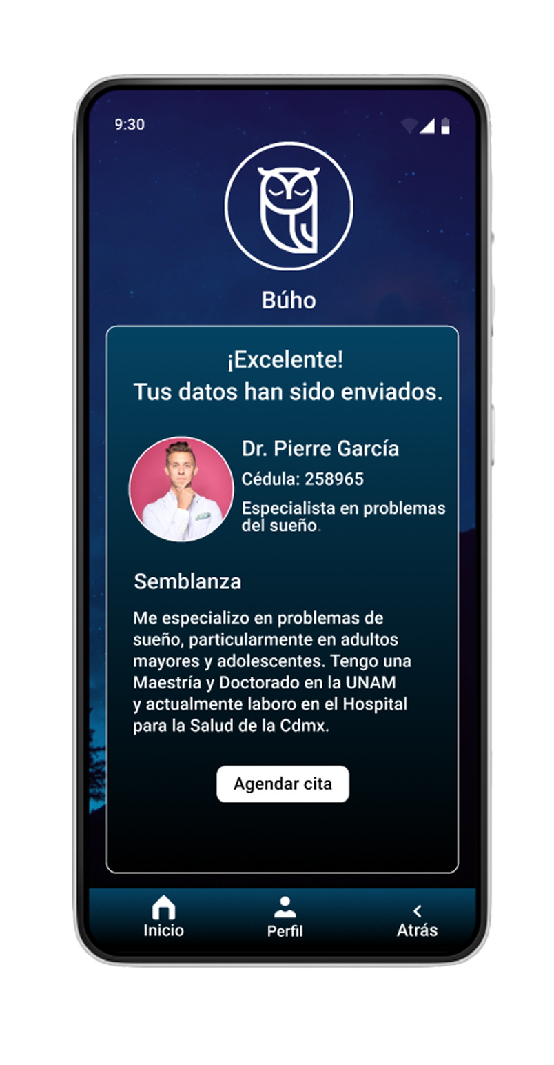By completing your personal information, the app will give you the option to send your data to a specialized doctor. The app will also provide information about your potential doctor, allowing you to view their license and area of expertise.